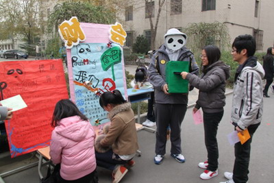 2011年11月24日中午,我院财会金融系在二食堂门口,开展“熊猫慢递”活动,请大一新生写下自己的心声和理想,寄给2年后的自己,此活动深受师生好评。