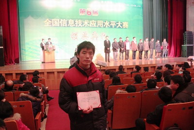 12月20日,在北京大学百周年纪念讲堂举行的第六届全国信息技术应用水平大赛举行了隆重的颁奖典礼。北京培黎职业学院计算机系学生张书振喜获(Java程序设计)二等奖,程沉、田坪郁、段文静、吴欣怡、张林霞等5位同学获得优秀奖。这是学院首次组织参加这项全国大赛就获得这样喜人的佳绩,可喜可贺!