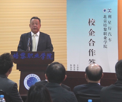 在北京培黎职业学院新图书馆大会议室的签约仪式上,北京培黎职业学院董事长、院长余临博士介绍说,此次培黎学院与利星行汽车的签约合作,是学院教育教学改革的新举措,是贯彻校训“手脑并用,创造分析”的新成果,是学院努力探索新专业人才培养的新进步。利星行汽车不仅将顶级豪华汽车上的核心零部件作为教具带进培黎校园,还将为培黎学生们提供珍贵的实习岗位,这样非常有利于学生们在实践中提高专业技能,使高职院校培养出更适应当前市场需要的高素质应用型汽车专业人才。