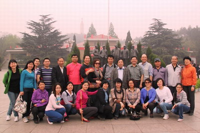 图三、参观西柏坡纪念馆在五大书记塑像前留影