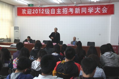2012年4月27日上午,欢迎2012级自主招考新同学大会在我院原图书馆二层大厅隆重举行。学院党委副书记、常务副院长尤锡良,党委副书记、副院长翟天利,副院长李培均,2012级全体自主招考新同学和班主任老师参加大会。会议由学生工作处李建平处长主持。