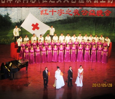 在大气、奔放的大型合唱《为红十字歌唱》中晚会拉开帷幕。