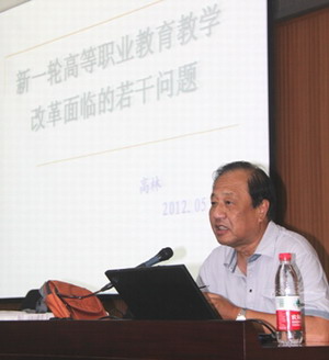 高林教授首先简要介绍了前几轮高等职业教育教学改革的理念和目标,取得的成绩及存在的问题。他重点分析了四个问题:一是高等职业教育人才培养的核心能力,二是工学结合、校企合作、顶岗实习人才培养模式中课程的具体形态;三是校企合作必须解决的问题;四是高等职业教育的中国特色。最后,高林教授就提高教学质量为核心,搞好评估准备工作提出了八点建议。