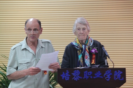路易•艾黎战友,著名国际主义战士、教育家Isabel Crook伊莎白•柯鲁克女士讲话说,今天能来参加培黎职业学院建校30周年,我感到非常的荣幸,这是我的老朋友路易•艾黎关心教育、关心农村发展、关心民间外交的非常伟大的事业,我期望培黎越办越好!