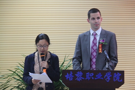 新西兰驻华大使Karl Worker(伍开文)先生代表、使馆高级教育项目主管(中国)邓思远先生(Senior Education Manager – China) Mr Stijn Te Strake讲话,称赞培黎学院办学的成绩,期望有进一步的合作和发展。