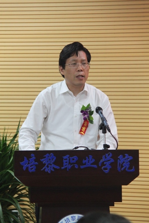 财会金融系副教授黄贤明代表全院教师发言,他说作为一线教师,将以最饱满的精神状态、最积极的工作热情投身到各项教育教学工作中去,备好每一个教案,讲好每一堂课,搞好每一次教研,关爱每一位学生,在平凡的岗位上为培黎发展贡献自己的岁月年华!