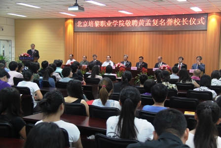 6月25日上午,敬聘第十届、十一届全国政协副主席,原全国工商联主席,现任全国工商联名誉主席,中国人权发展基金会理事长,高级工程师黄孟复主席为我院名誉校长仪式在学院图书馆报告厅隆重举行,这是培黎学院历史上又一个即将被记载的重要日子。出席仪式的领导有北京市委社会工委书记、北京市社会办主任宋贵伦,北京市委教育工委副书记唐立军,北京市教委民办教育处处长李开发,北京市委社会工委组织处长卢建,学院中层以上领导和师生代表。学院董事、常务副院长尤锡良主持了仪式。