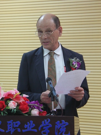 黄孟复名誉校长发表了热情洋溢的演讲。他说,受聘名誉校长感到有些不安。自己没有为培黎学院做多少事情,但能够在退休之后为教育事业,或是为职业教育做一点事情,我是非常高兴,非常愿意的。今天这么多领导,还有培黎的师生们隆重举行名誉校长的聘任仪式,我非常感动。作教育工作者光荣。中国教育事业的发展,这些年获得了巨大发展。我国有上千所大学,每一年将近有七百万大学生毕业,教育经费已经占到了GDP的4%。黄校长介绍了其祖父黄炎培先生的职业教育思想,认为,教育是一个国家、一个民族发展的基础。把职业教育作为国家强盛的,人民受教育水平提高的一个切入点,这样既解决了就业问题,社会又得到发展,还壮大了国家力量。职业教育很重要。我们国家的经济结构调整,预示着我们需要大量的有技能的人才,现在大学生的就业问题原因很多。我们需要有技能、有文化的技工人才又很缺少,高校教育是不是应该根据社会发展的情况来改变?我认为,职业教育的进一步发展就能改变这个状况。如果我们高校的教学结构能够和我们的经济结构相匹配,把我们的巨大的知识分子优势注入到经济的转型过程中,这将使我们的经济插上一个新的翅膀。我认为,教育工作者具有神圣的使命,尤其在职业教育战线上每年培养出来的知识分子,将有力地推动今后几十年的经济发展。我还认为,国家每年培养出来的大学生,安排好他们的就业对社会稳定意义重大。我希望,北京培黎职业学院和全国的职业学校能够培养出中国的民营企业家,对国家的经济发展起到积极的推动作用!