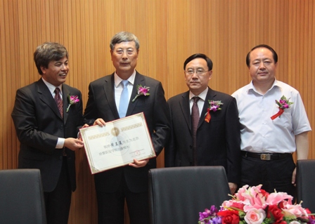 尤锡良常务副院长介绍了与会领导和人员。9时30分,敬聘黄孟复主席为我院名誉校长仪式在全体起立奏唱国歌声中开始。