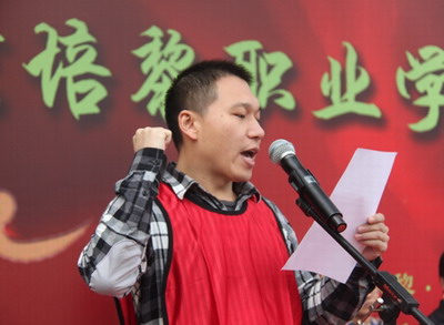 青年教师李圣涛代表全体裁判员宣誓:为了确保本届比赛顺利进行,我们坚决服从裁判长指挥,严格遵守竞赛规则和裁判员纪律,尊重参赛选手,文明裁判,严肃认真,秉公办事,圆满完成各项裁判工作。