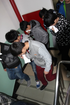 图二、学生在听到逃生讯号后有序撤离火灾现场