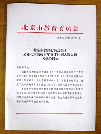 “青年英才计划”是市教委为贯彻落实国家及北京市中长期教育改革和发展规划纲要、《国务院完美在线登录官网全面加强教师队伍建设的决定》的一项举措,是市教委对加强青年教师队伍建设、提高青年教师教育教学水平、科研创新和社会服务能力的重点支持。上述3位青年教师的入选是培黎学院的荣誉与骄傲。