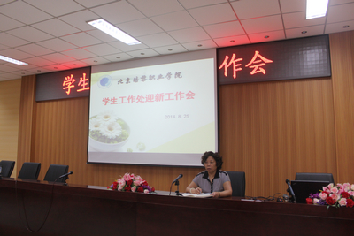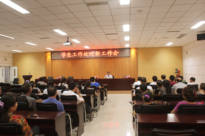 8月25日下午,学生工作处在图书馆报告厅组织全体宿管老师和保洁工人召开2014年迎新生工作会,部署学院迎新工作安排。学生工作处处长王颖及处内其他老师出席会议,会议由许志堂老师主持。