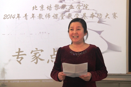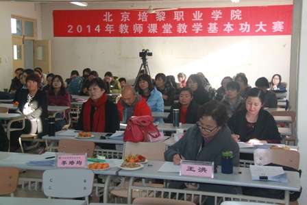 大赛特聘北京联合大学、北京财贸职业学院、北京政法职业学院、北京城市学院等5位经验丰富的专家担任评委,她们中有北京市教学名师和北京市青年教学基本功大赛一等奖获得者。参赛的12位教师经过认真准备,以饱满的热情、自然得体的教态、流利的语言进行授课,充分展示了我院教师扎实的教学基本功和良好的教学风貌。各系领导和专任教师观摩了比赛,并与参赛教师做了互动,比赛现场气氛活跃。