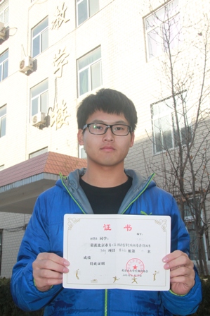 在比赛中,林锦东同学不惧强手,认真参赛,凭着初生牛犊不怕虎的劲头,过五关斩六将,脱颖而出,最终站在了冠军的领奖台上。