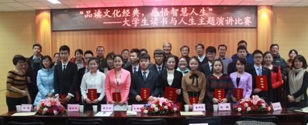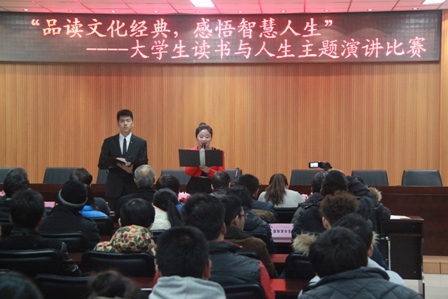 比赛中,参赛选手们围绕着“品读文化经典,感悟智慧人生”这一主题,从不同角度、不同层面出发,用鲜活生动的内容、热情洋溢的语言,畅抒着读书的快乐,满怀激情地描绘着自己对读书的美好感受,声情并茂的演说着对古今中外文化经典的感悟,以及对人生梦想的畅想。参赛选手从孔孟学说到伟人毛泽东的丰功伟绩等淋漓尽致的展现了文化经典的无穷魅力,赢得了领导和同学们的阵阵热烈掌声。