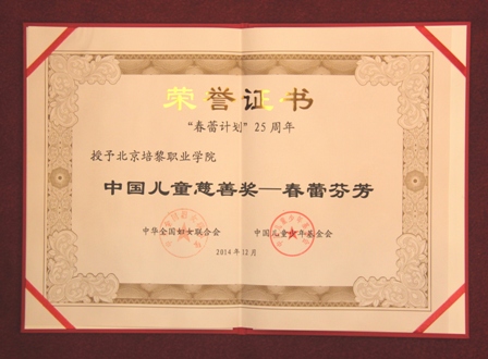 学院获得“中国儿童慈善奖——春蕾芬芳”证书
