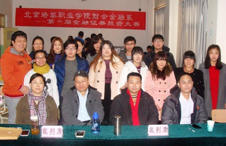 2014年12月起,北京培黎职业学院财会金融系在3号教学楼501教室举办第二届金融证券投资大赛,2013级金融与证券专业学生参加了初赛。经过选拔,共有14名学生进入决赛。