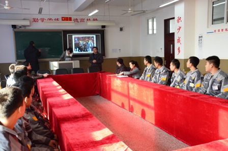 在延庆第一职业学校老师的陪同下王志斌主任一行参观了汽车实训楼,并与该校学生进行了交流。