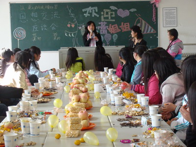 01、05级的“春蕾”生们从四面八方赶来,汇聚于此,别后重逢的温情洋溢开来……交流会于上午9点半正式开始。首先由系办王芳老师和05、08级“春蕾”班班主任陈小梅老师讲话,接着是趣味知识抢答。之后,同学们表演了精心准备的节目,此时教室里的气氛变得更加热烈。