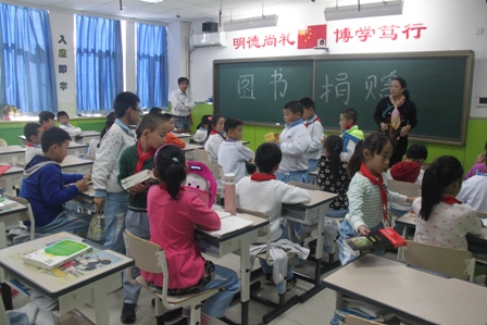 田淑芹老师代表项目组为同学们捐书