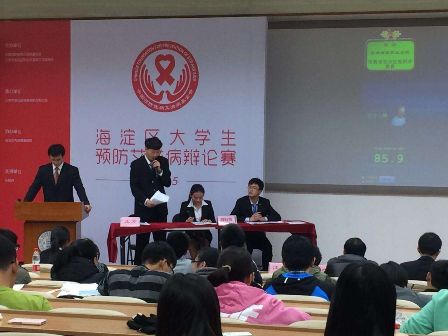在中国预防性病艾滋病基金会和海淀区疾控中心的精心组织安排下,11月14号“海淀区大学生预防艾滋病辩论赛”(初赛)在北京师范大学开赛。我院经过前期院内辩论选拔,组成由国际商务系戴雪、计算机系赵玉祥、工商系唐艺哲和法律系马佐四位同学为代表的辩论队,代表我院参赛。
