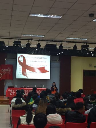 为加强我院学生对艾滋病知识的了解,提高自我防范意识,2015年11月17号下午,我院红十字会、红丝带社团在学生活动中心举办了一场“防艾知识讲座”。本次活动邀请了地坛医院和北京市红丝带之家的三位志愿者为我院学生做现场讲解。