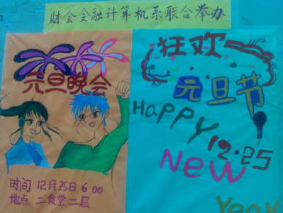 新年将至,喜庆的气氛开始蔓延在每个人的心底。值此佳节之际,计算机系学生会、团总支与财会金融系团总支将于2008年12月25日晚6点在学生活动中心联合举办“2009年迎新春元旦晚会”。届时将邀请计算机系与财会金融系两系同学同场庆祝!这是我院首次由两系学生组织合办的活动,将借着圣诞节的喜庆,和同学们的热情,给您带来一场青春、浪漫的庆典!