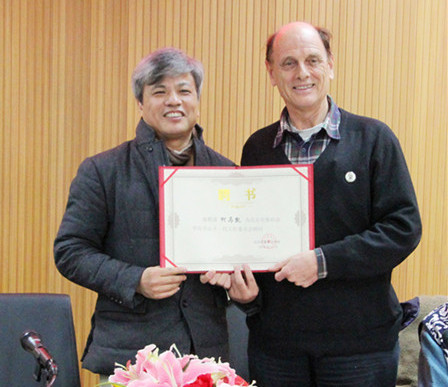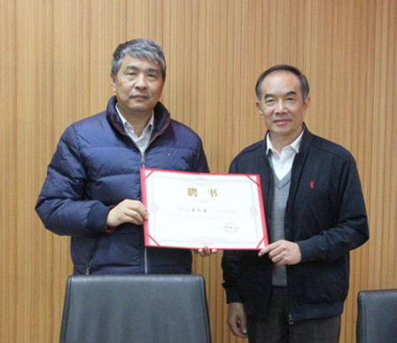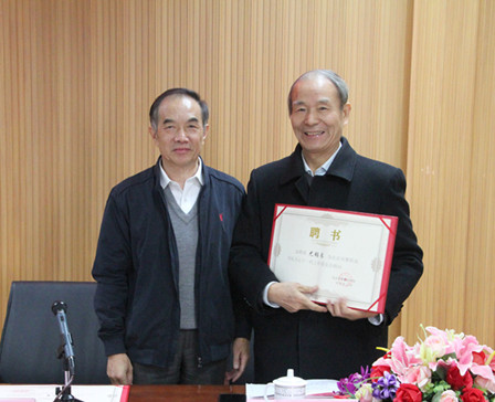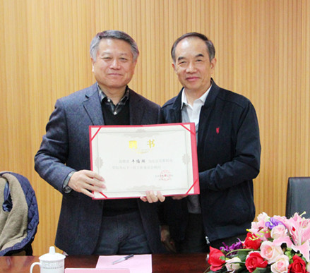 学院党委书记王蒲向尤锡良顾问颁发聘书