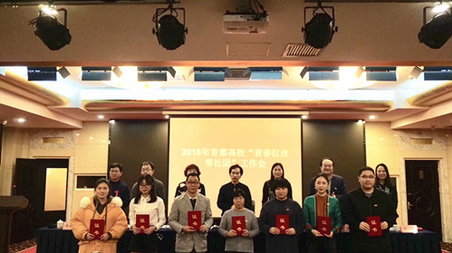 会上,首都高校“青春红丝带”社团工作领导小组办公室对2018年的高校防艾工作进行了总结,肯定了首都高校“青春红丝带”社团对北京市防艾事业的贡献。会上还对在2018年防艾宣传工作中表现突出的集体和个人进行表彰,我院“青春红丝带”社团因防艾教育工作落实到位,相关活动组织有力,被授予2018年首都高校“青春红丝带社团”先进集体;年悦老师荣获2018年首都高校“青春红丝带”社团优秀指导教师;外语系张家琪同学荣获2018年首都高校“青春红丝带”社团优秀志愿者。