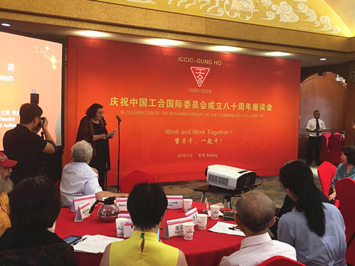 2019年7月6日,“庆祝中国工合国际委员会成立80周年座谈会”在北京友谊宾馆友谊宫拉开帷幕。我院师生代表和工合国际委员、国内外友人、兄弟组织代表等各界人士到会祝贺。中国人民对外友好协会副会长谢元、新西兰驻华大使傅恩莱、工合国际顾问伊莎白、原中华人民共和国外交部部长黄华夫人何理良、爱泼斯坦遗孀黄浣碧、傅莱遗孀江国珍、新中友好协会会长荣大伟等应邀出席座谈会。