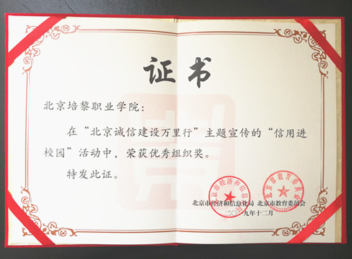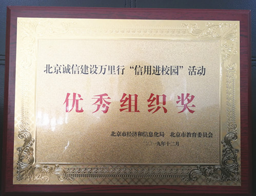 我院并荣获“北京诚信建设万里行”主题宣传的“信用进校园”活动优秀组织奖。本次活动中共12所北京高校获此殊荣。