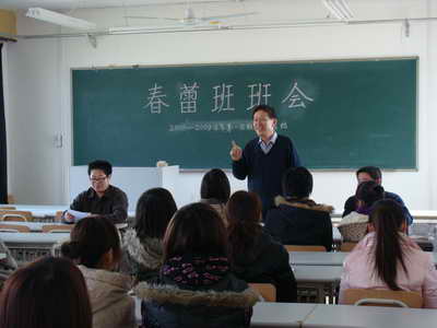 财会金融系于3月13日中午,在艾黎楼309教室召开08级春蕾班新学期的第一次班会,总结上学期工作并对新学期工作做出安排。春蕾班全体学生,学生工作处处长李建平、财会金融系副主任刘乐山等参加了会议。班会由财会金融系主任黄贤明主持。