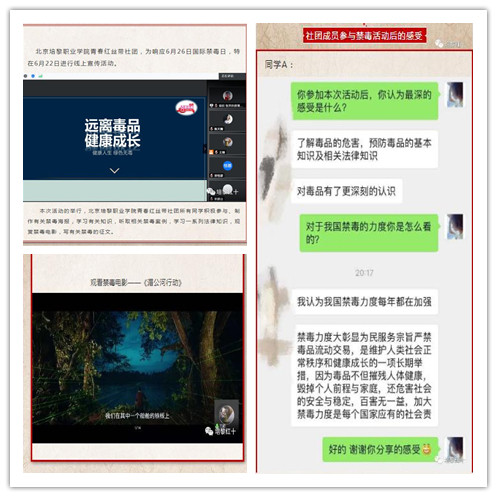 6月26日是国际禁毒日,北京培黎职业学院为深入贯彻落实习近平总书记对禁毒工作作出的重要指示批示及《北京市禁毒委员会完美在线登录官网印发2020年北京市全民禁毒宣传月工作方案》的通知精神,全面加强新时代禁毒宣传教育工作。学院团委组织学院“蓝色盾牌”禁毒志愿者支队开展了一系列626禁毒宣传活动,利用多种形式广泛宣传和普及禁毒知识,活动成果受到北京市高校“蓝色盾牌”禁毒大队和北京市禁毒委员会办公室肯定,在北京市禁毒委员会办公室官方微信公众号——“北京禁毒”上给予了公开报道。