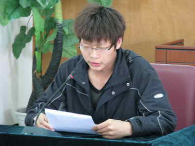 此后,获得国家励志奖学金的李龙卫、马步、乔磊、王小辉四位同学分别进行了典型发言,畅谈了自己的获奖感言及学习心得体会。其中,07高职1班的乔磊说:我有机会获得国家励志奖学金、学院优秀三好学生一等奖。我很高兴,也很激动,更多的是感激。我是一名来自农村的孩子,我的家庭没能给我提供优裕的生活条件,但它却培养了我敢于迎接挑战的品格。我要靠自己的努力改变命运。
