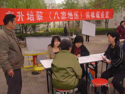继“3.15法制宣传日”活动后,法律系东升培黎八家地区法律服务室本着“依托东升、服务基层”的理念,于4月23日上午9时,在霏霏细雨中深入到北京清河毛纺南里小区进行了法律咨询活动。