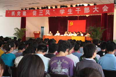5月12日中午12点,我院“抓党建,促三风”学生干部动员大会在学生活动中心召开。学院副院长翟天利,学生处处长李建平、副处长张长辉,保卫处处长德胜,继续教育部主任韩旺辰及各系的负责行政工作的副主任,全院300多名学生干部代表出席了会议。会议由学生处处长李建平主持。