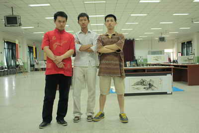 图一、参加艺术展的三位同学左起李伟、高刚、贾志恒