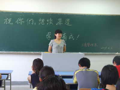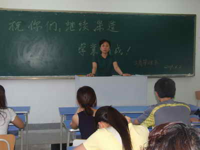 6月2日上午9点,工商管理系27名被北方工业大学录取专升本的同学心怀喜悦的心情来到3#教学楼111教室,参加该系为他们组织的座谈会。教室的黑板上写着几个大字:祝你们继续深造,学业有成。