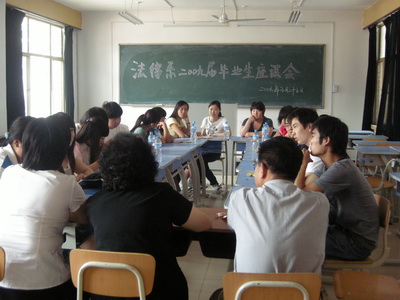 5月25日上午,我院法律系在艾黎楼101教室召开了2006级高职毕业生代表座谈会。法律系主任郭俊宴、教学副主任郭岱光、行政副主任周化平、系团总支书记田淑芹、班主任刘忠仁参加了座谈会。