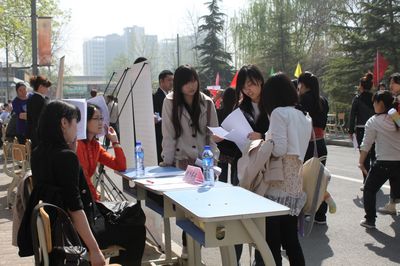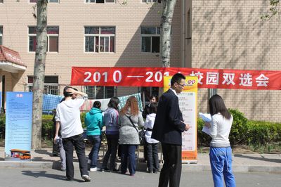 2011年4月14日上午,我系邀请20余家信誉好、待遇高、专业比较对口的企事业单位来我院参加校园招聘会。在学院就业指导办公室和兄弟系的大力支持下,600余名毕业生踊跃参会,精心选择自己心仪的就业单位。有的同学现场就与就业单位达成就业意向,招聘会现场呈现出供需两旺的良好局面。