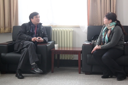 图一、会前,余临院长与李英男副总经理共同商议培养人才