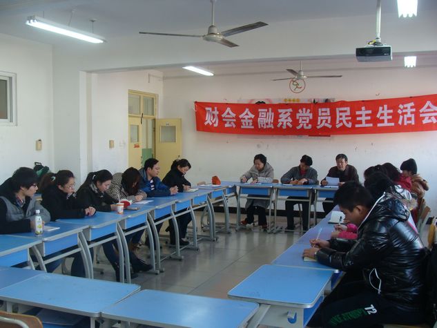 2012年12月25日下午,财会金融系党支部召开民主生活会。刘乐山书记代表支委会作2012年党支部工作总结,根据学院党委5号文件精神,部署深入学习贯彻党的十八大精神的安排,要求党员认真学习党的十八大报告,结合本职工作,写出心得体会,2013年3月召开学习十八大精神交流会。与会党员对照党员标准和自己本职工作,填写民主测评表,对支部书记进行满意度测评,组织非党群众对党支部工作和党员发挥作用进行测评。党办主任于凤老师参加了民主生活会,对财会金融系党支部各项工作所取得的成绩给予充分肯定,并对如何深入学习贯彻党的十八大精神提出指导意见。