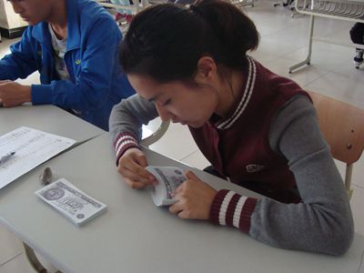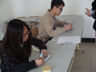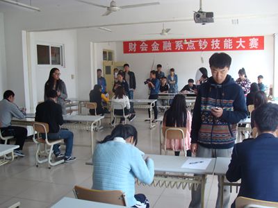 2015年4月14日,我院财会金融系在3号教学楼405教室隆重举办了“财会金融系技能大赛之点钞大赛初赛”。本次比赛是以校训“手脑并用,创造分析”为宗旨而开展的具有财金系独特风貌的技能大赛,得到了系领导、各班班主任的大力支持,共有119名13、14级学生报名参加了初赛。