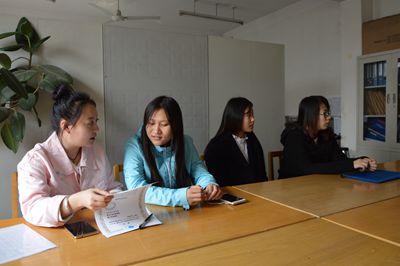 2015年9月,财会金融系2014级会计2班陈静、王佳宇,2014级会计3班张琳娜、张雨寒四名同学赴台湾朝阳科技大学进行为期半年的交流学习。为了更好的了解学生在台湾学习、生活的情况,推动国际化交流和合作,为更多的学生走出国(境)门,开阔视野,锻炼能力,增强就业优势提供可借鉴经验,我系于2016年3月16日中午,在1号教学楼408系办公室召开赴台学生座谈会。会议由财会金融系行政副主任刘乐山主持,团总支书记许冠男、辅导员张弘及四位赴台学生参加了会议。