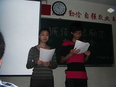 班会以自由讨论相结合的综合教育活动方式进行,其间观看了感恩、励志视频,获国家资助和奖励的同学作了演讲发言,还学习了《感恩的心》手语视频,在班会即将结束时班主任张志荣老师作了总结,他在总结中讲到的“做老师的有两个希望,一是希望你们做好人,二是希望你们学习好。有人把人才分为四类:有德有才,有德无才,有才无德,无德无才。我相信我们的同学都是人才,因此希望你们做有德有才的人,不要成为有才无德的人。要成为有德有才的人,就必须养成良好的习惯,做文明的学生。”给我们留下了很深的印象,让我们铭记在心。