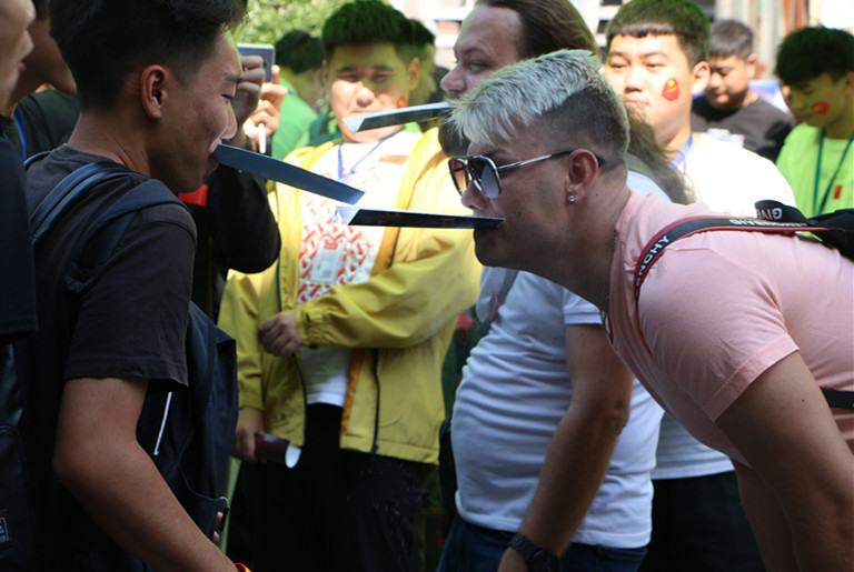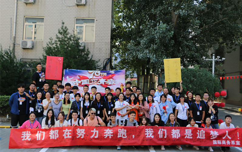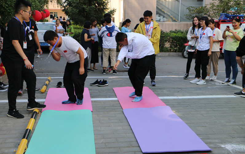26日中午活动现场国旗迎风而动,团学联合会充满“中国范”的舞蹈点燃了此次活动。本次活动设置两个游戏环节,分别为“我对祖国的爱——扑面而来”、“奔向我最爱的祖国——速度之王”。游戏结束都需要喊出“祖国,我爱你!生日快乐!”的口号。中华人民共和国70年披荆斩棘,70年风雨兼程,中国共产党团结带领亿万人民创造了新中国波澜壮阔、惊天动地的历史。我们特此编排小游戏,游戏中有指压板等道具,同学们不畏疼痛,通过自己的行动表达自己对祖国母亲浓浓的爱。活动最后同学们在“我们都在努力奔跑,我们都是追梦人!”的横幅上签字。国有梦,国人亦有梦,青年人更应有梦。梦已起航,我们都是追梦人!