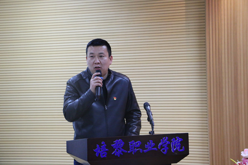 邹方亮老师发言感谢我系为学院培养了大量体育人才,对“培黎飞人”裴芷汀、篮球主力姜子豪给予高度评价,并告诉同学们什么是真正的体育精神,并鼓励学生们将体育精神运用到以后的学习生活中。