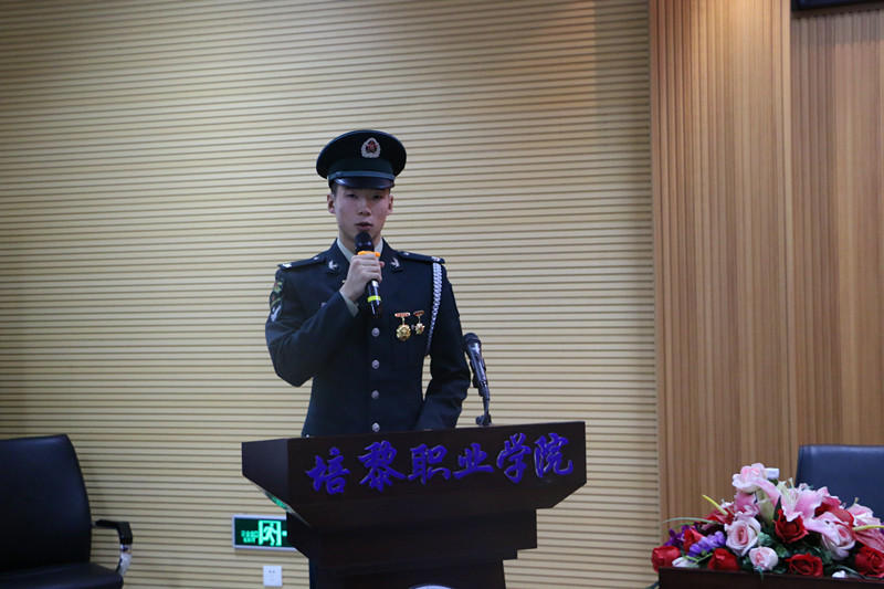 周明昊同学荣获2018—2019年度国际商务系“精神文明标兵”称号并作为学生代表进行发言。戎装在身的他分享了自己入学、入伍、参加庆祝新中国成立70周年阅兵仪式的事迹,分享自已参加任务前后心理变化、心得体会和感受感悟,语言朴实真挚、事迹感人至深,赢得了在场领导和同学们的阵阵掌声。