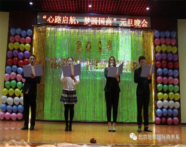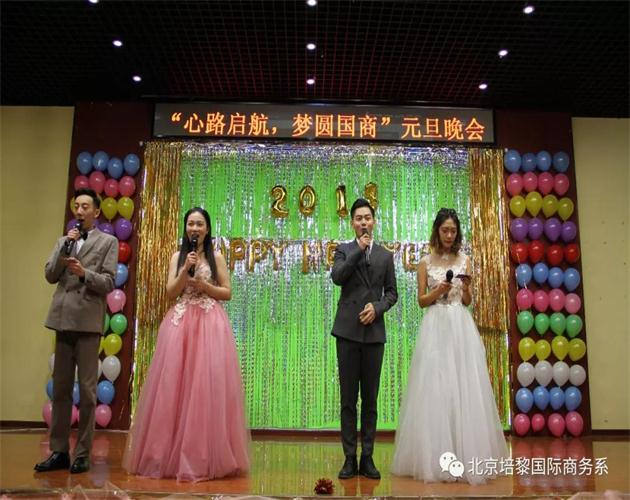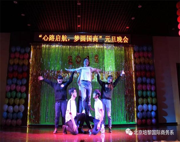 12月28日晚,由我系举办的“心路启航,梦圆国商”元旦联欢晚会在活动中心华丽上演。各位领导、老师和国商的同学们齐聚一堂,共度良宵。晚会于6:00准时开演。伴随着热辣的开场歌舞,4位主持人走上舞台,对到场的各位领导、老师、同学们表示热烈的欢迎,随后在全场观众热烈的掌中宣布元旦晚会正式开始。